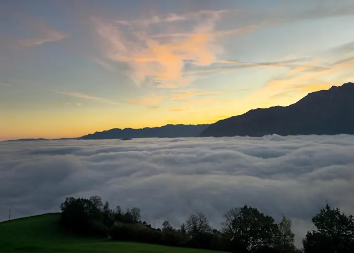 Nebelmeer Chalet Grabs Mit Panorama Ueber Das Rheintal